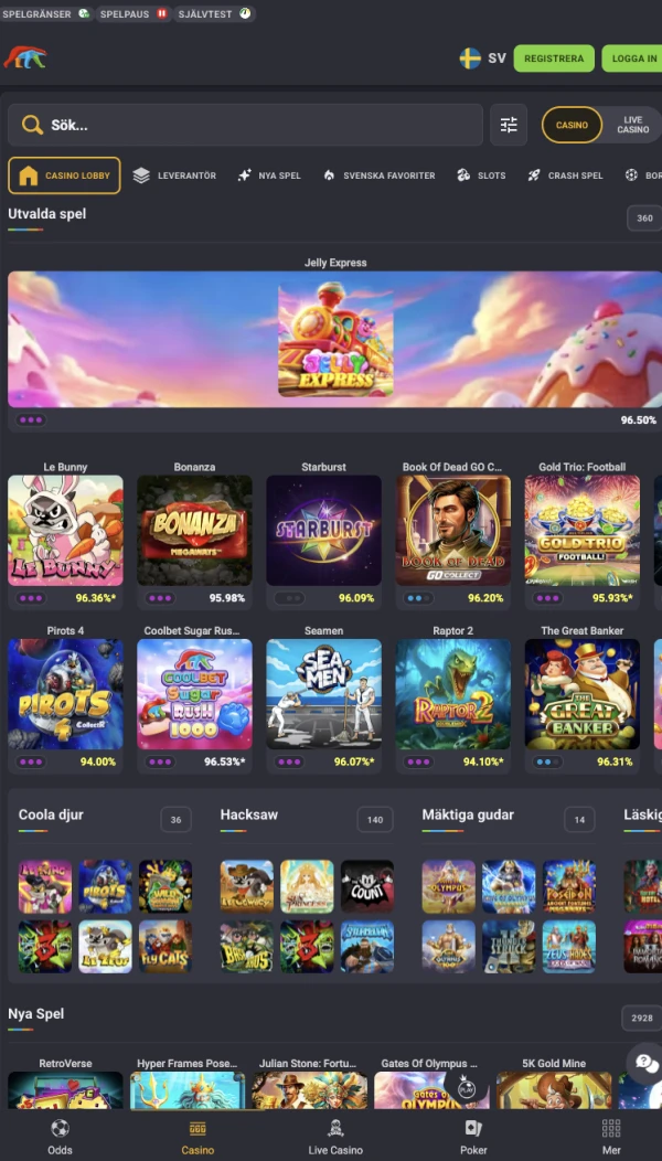 För anvÀndare som gillar att jÀmföra alternativ erbjuder vi bÄde casinospel och sportsbetting under ett och samma konto, med separata vÀlkomsterbjudanden. NÀr du spelar via casino hos Coolbet i mobilen Àr dina kontoverktyg desamma: grÀnser, historik och support finns alltid tillgÀngligt i menyn. à tkomst till Coolbet casino i Sverige regleras enligt svenska regler, inklusive obligatoriska insÀttningsgrÀnser vid registrering och sjÀlvavstÀngning via Spelpaus.